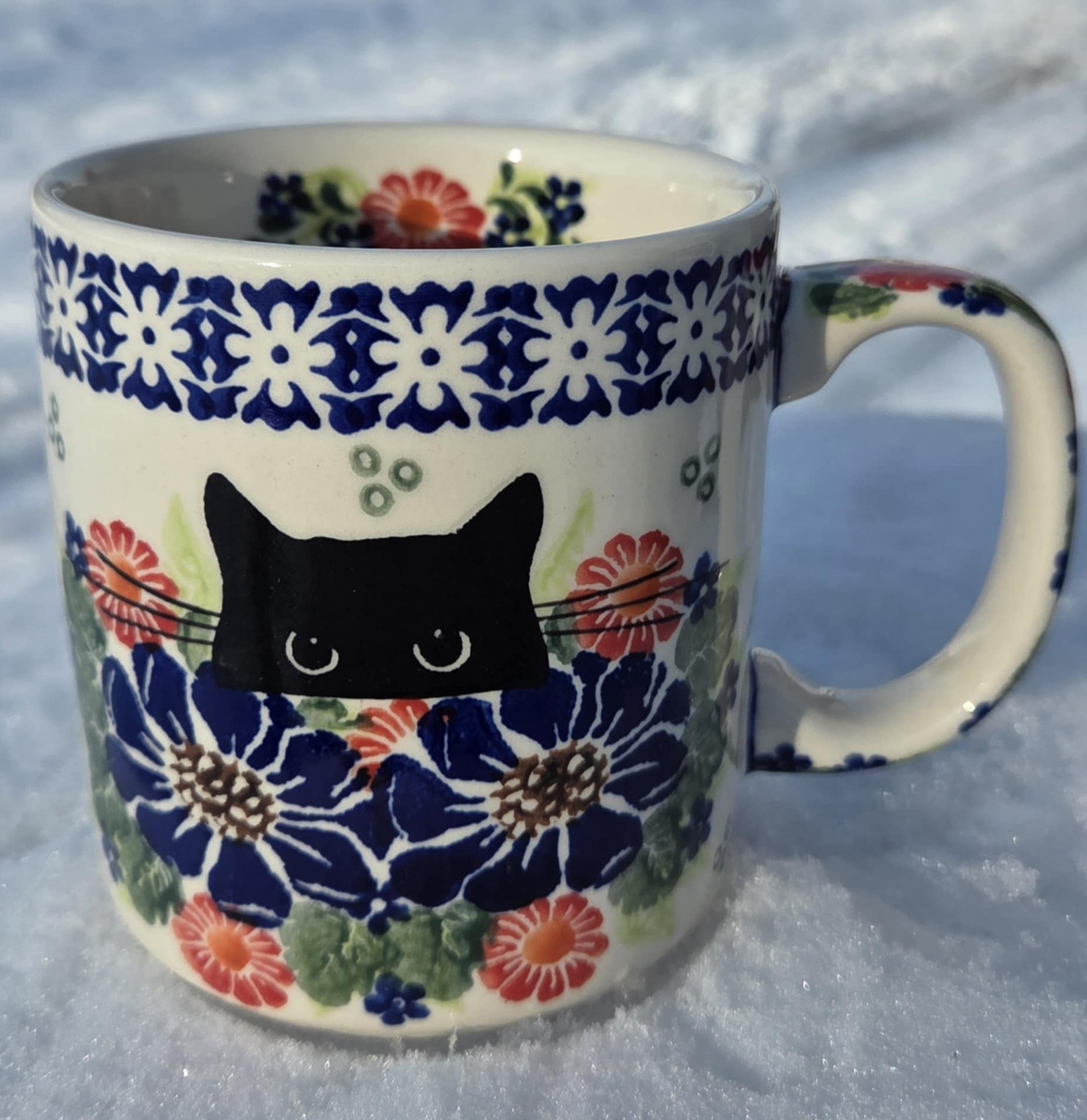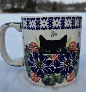Kubek Kot Kwiaty Ceramika Bolesławiec 1-06 U76